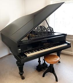 Zum Verkauf steht ein Blüthner-Flügel 190cm aus dem Baujahr 1906 mit originaler Tastatur und der typischen Blüthner-Patentmechanik.
