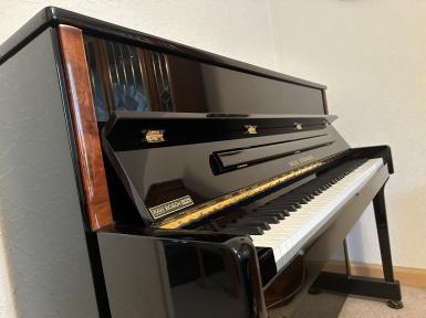 Zum Verkauf steht ein neuwertiges und makelloses Klavier Wilh. Steinberg, schwarz Hochglanz poliert mit Wurzel-Lisenen (braune Abschluss-/Zierleiste am ...