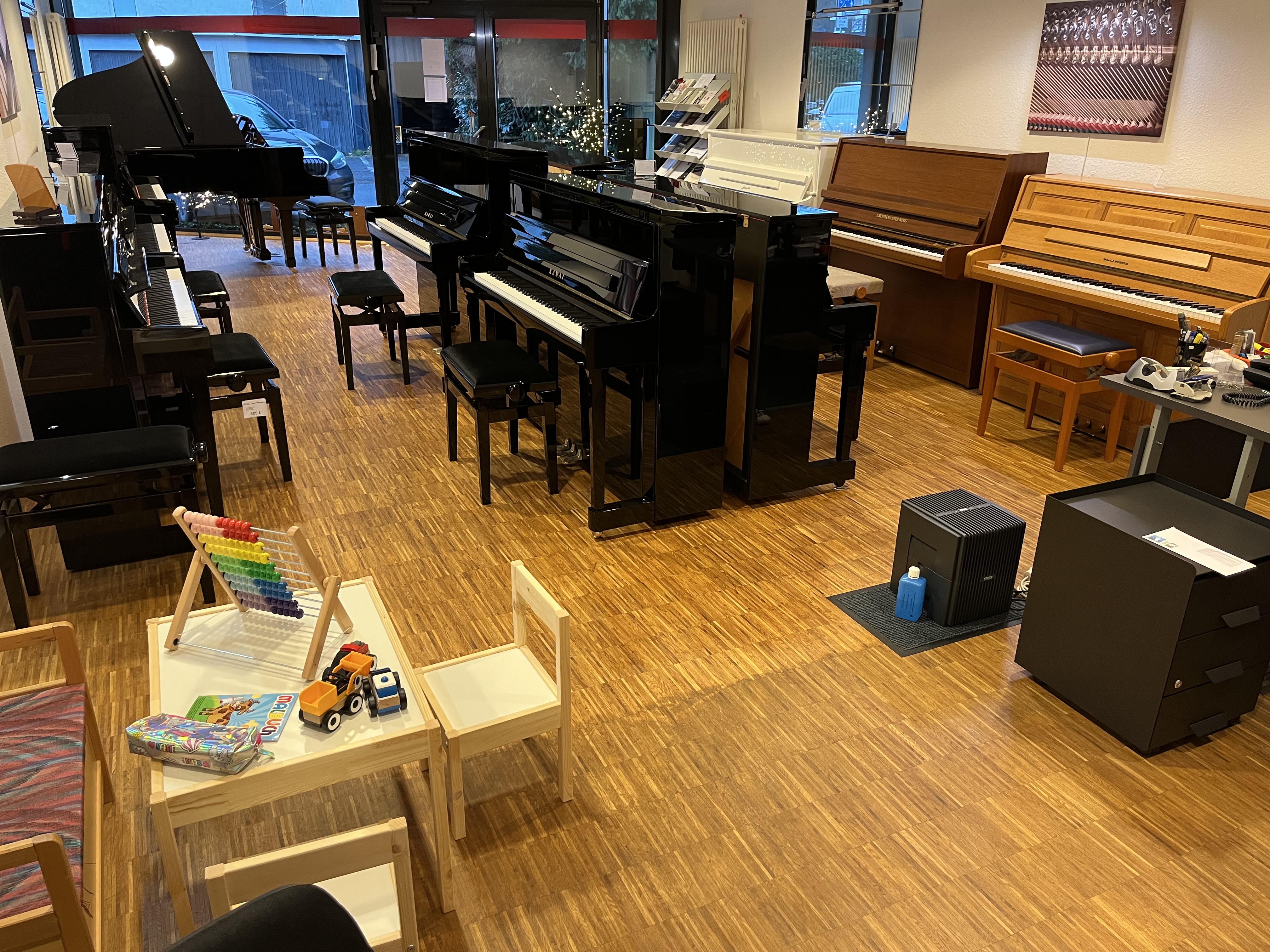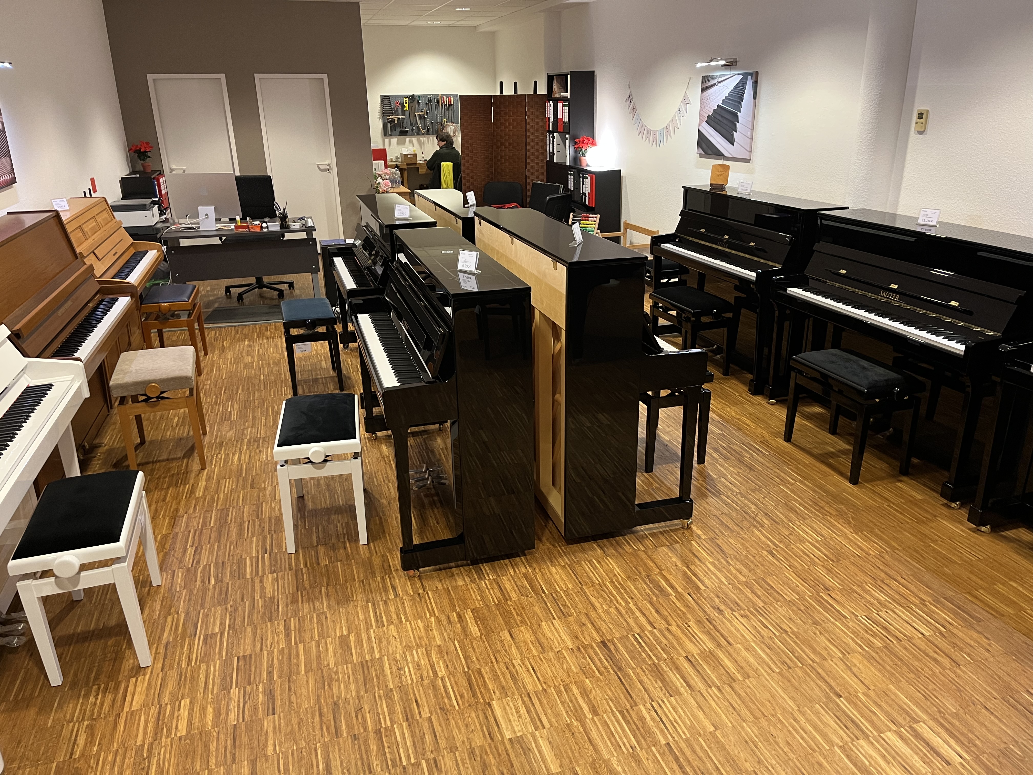 in unserem Verkaufsraum in Kreuztal neue Pianos / Flügel führender Hersteller, wie Kawai, Sauter, Seiler, oder Ritmüller...