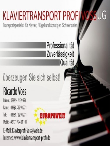 Sie haben ein Klavier oder einen Flügel gekauft? Sie ziehen um? Sie brauchen einen Klaviertransporteur? Finden Sie über die Umkreissuche einen Klaviertransporteur in Ihrer Nähe.Sie transportieren Klaviere und möchten der PIANOVA.COMmunity beitreten?