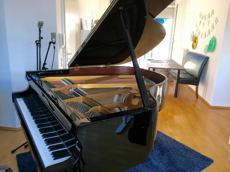 Mein geliebter Bechstein, der mich seit 2012, als ich bei Piano Fischer in Stuttgart neu gekauft habe, begleitet…nun war es wohl eine Schnapsidee, ihn 4 Stockwerke hoch in meine neue Wohnung transportieren zu lassen. Im Hause war es noch wunderbar, aber hier ist es leider hellhöriger als gedacht. Ich rate allen Musikern daher von Scheidungen ab.