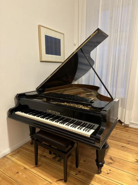 The instrument's pitch is 439 Hz. The grand action (tangent action) is original and shows signs of age-related. The surface is coated with a hand-applied shellac polish. In some places, the veneer has come loose.