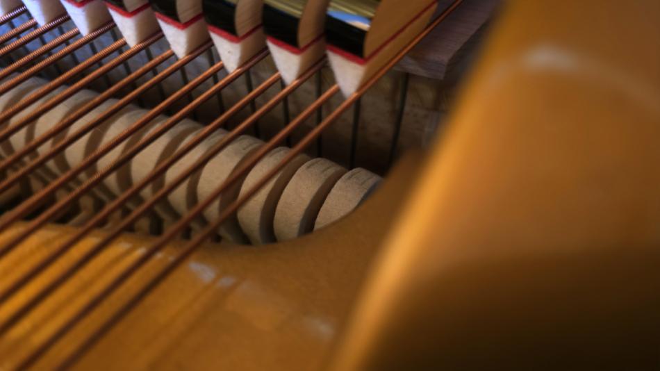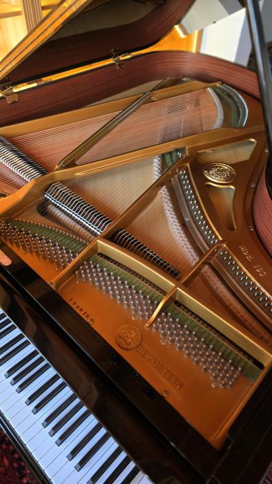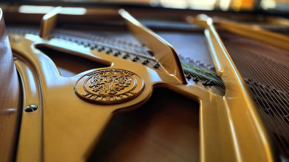 Der Flügel befindet sich in einem gepflegten, wohnraumgehaltenen Zustand und wurde regelmäßig gespielt.