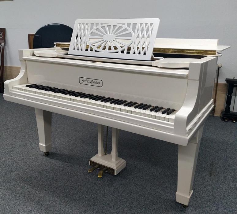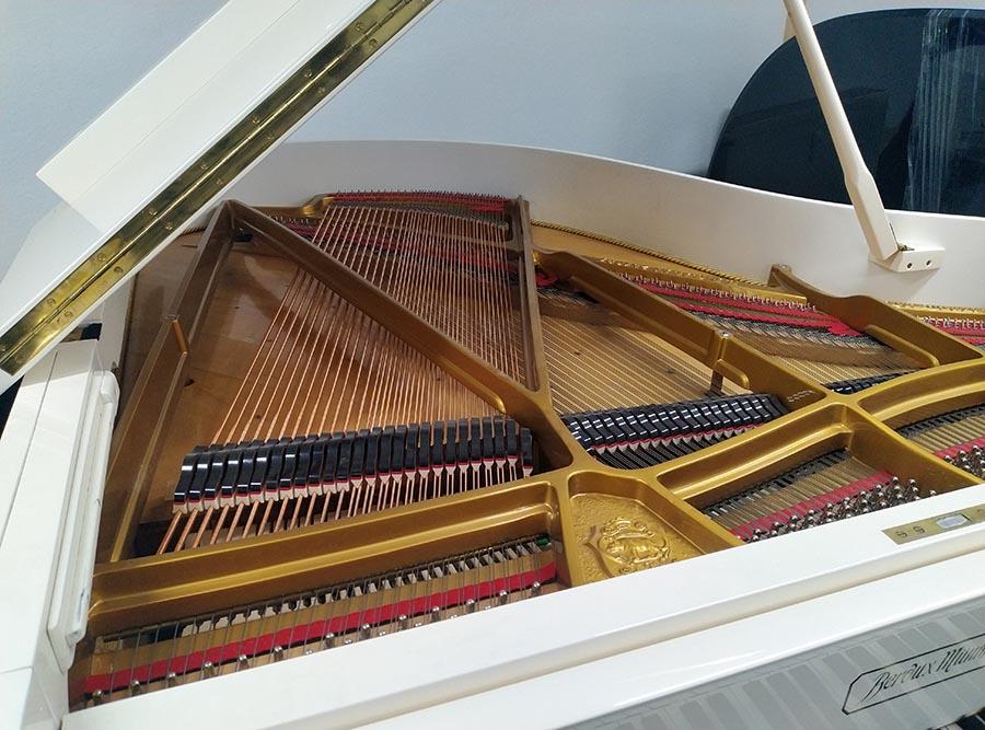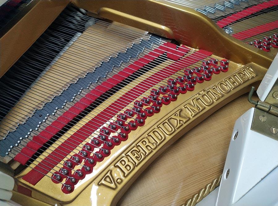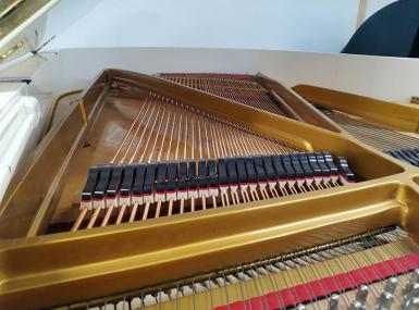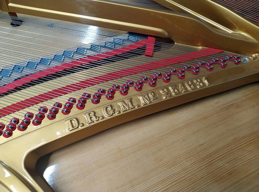 Weitere Informationen: Vor ca. 15 Jahren wurde in unserer Fachwerkstatt die Akustische Anlage des Flügels überholt. Dazu gehörte unter anderem das Ausspänen des Resonanzbodens, der Austausch der Stimmwirbel und Saiten im Bass und Diskant. Die Gussplatte wurde lackiert und die Gussplattenfilze ausgetauscht.