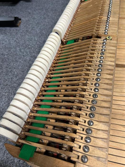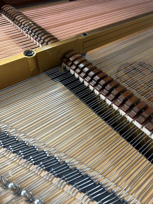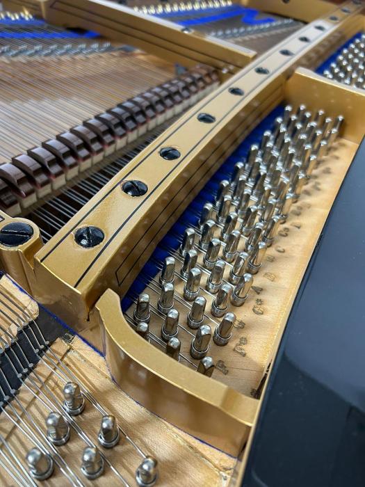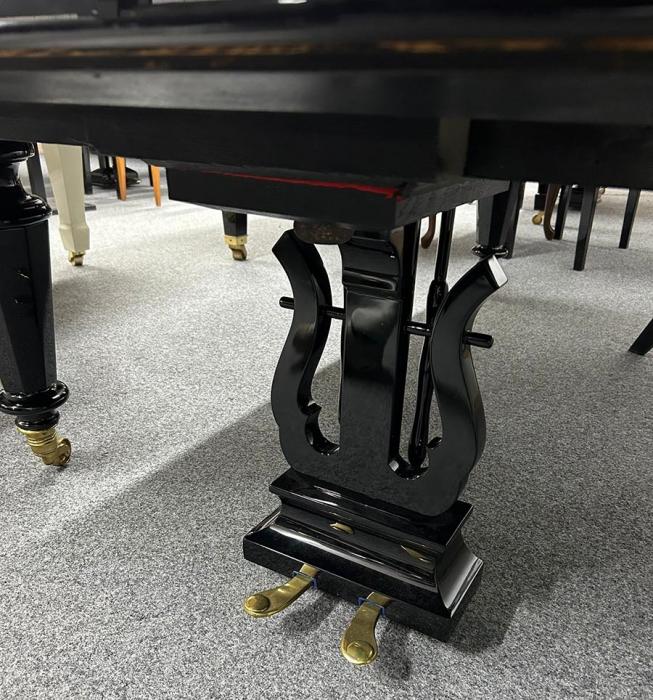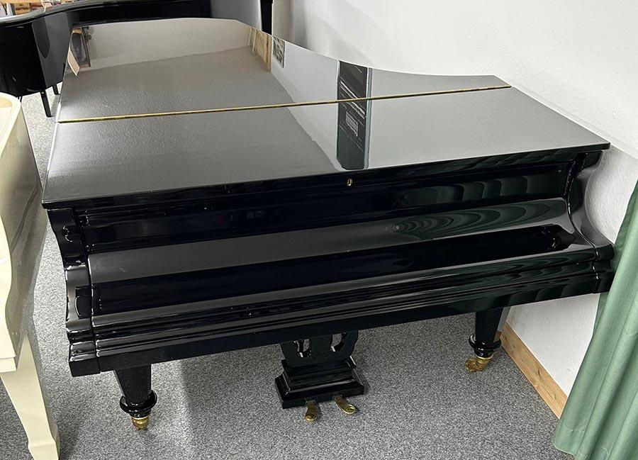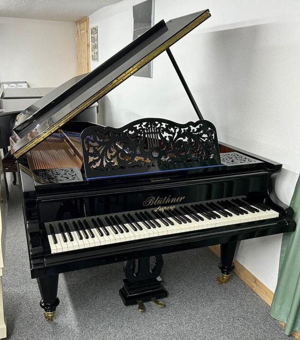 Weitere Informationen: Der Flügel wurde neu in schwarz Polyester lackiert. In unserer Fachwerkstatt wurde die Akustische Anlage komplett überholt. Dazu gehörten das Ausspänen des Resonanzbodens und der Austausch der Stimmwirbel, ebenso bekam der Flügel neue Saiten im Bass und Diskant. Im Zuge der Überholung der Blüthner Patentmechanik bekam das Instrument neue Hammerköpfe und anschließend wurde diecMechanik reguliert. Die Dämpfung wurde neu gesetzt und die Tasten neu ausgewogen und poliert.