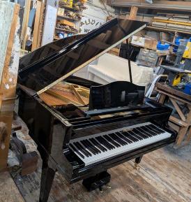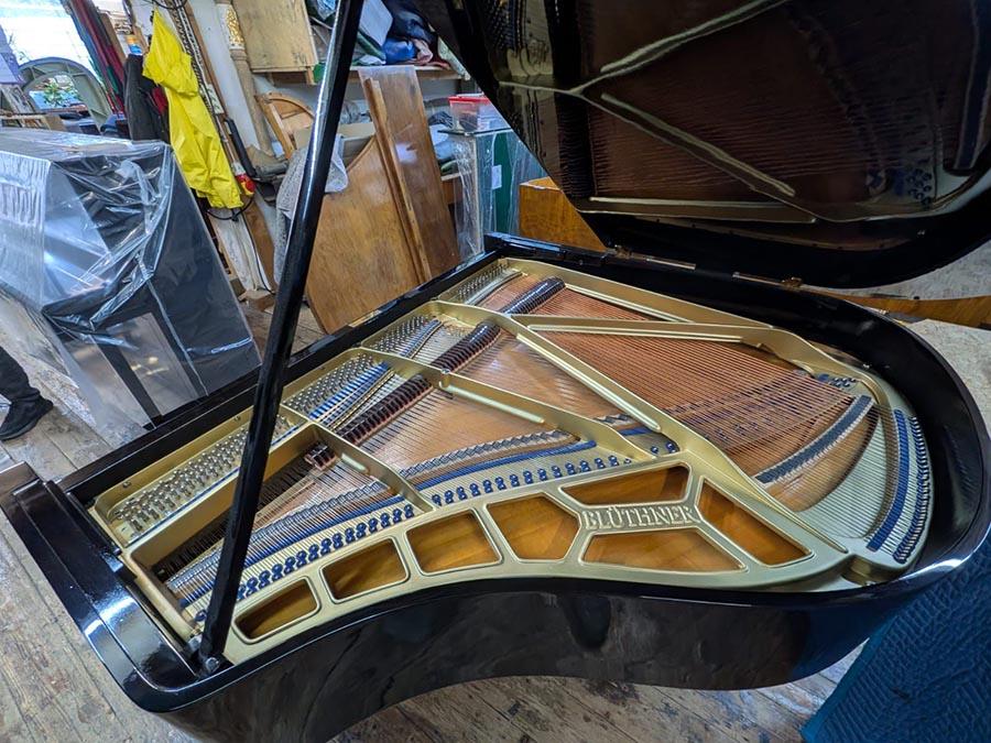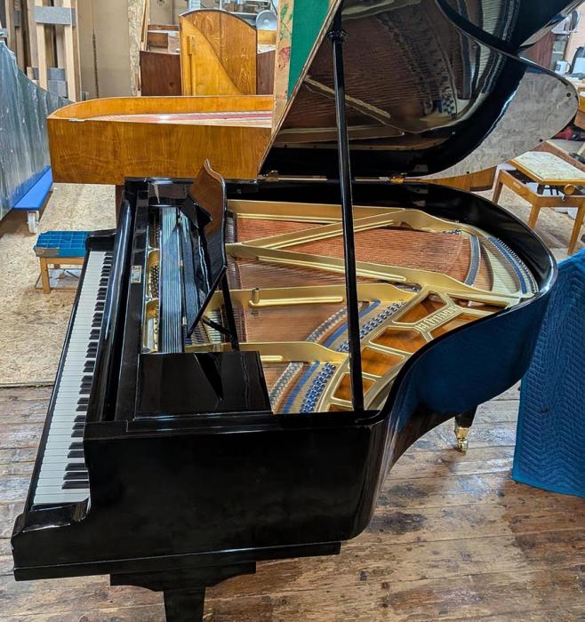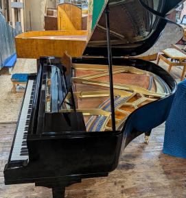 Weitere Informationen: In unserer Fachwerkstatt wurden die Hebegliedachsen ersetzt. Ebenso wurde die Mechanik umfassend reguliert, die Klaviatur ausgewogen, Gehäuse, Tasten und alle Messingteile poliert.