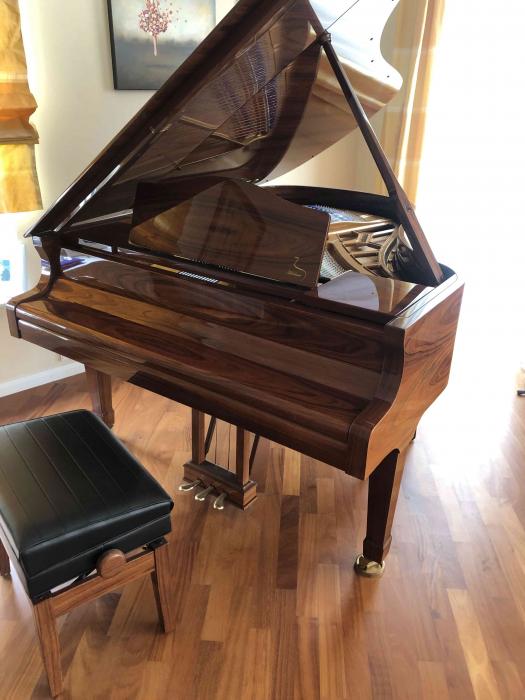 Umständehalber verkaufen wir unseren Blüthner Model 6-190 in traumhaften Palisander und bereits mit Aliquot Technik. Der Flügel ist sehr wenig bespielt und in einem erstklassigen Zustand. Baujahr 2014, seinerzeit ist er direkt im Leipziger Werk erworben worden und steht seither in einem Nichtraucherhaushalt. Er ist als wie neu zu bezeichnen, keinerlei Mängel, Kratzer oder sonstige Beeinträchtigungen. Für den Preis jetzt ein wirkliches Top Angebot, da der Neupreis heute bei ca. 89.000,- € liegt.Bei Interesse melden sie sich bitte per mail, auch wenn sie weitere Fotos wollen, oder einen Termin zur Besichtigung und einspielen.