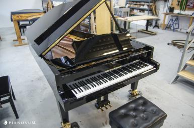 Dieser 1989 gebaute Flügel stammt aus Privatbesitz und wurde von uns technisch und optisch in einen nahezu neuwertigen Zustand versetzt. Die Mechanik erhielt neue Hammerköpfe, Stiele und Röllchen (Original Renner Mechanikteile). Die Klaviatur hat einen Kunststoffbelag und neue Tastengarnierungen. Oberfläche und Messingteile wurden komplett aufpoliert, die akustische Anlage befindet sich im tadellosen Originalzustand.