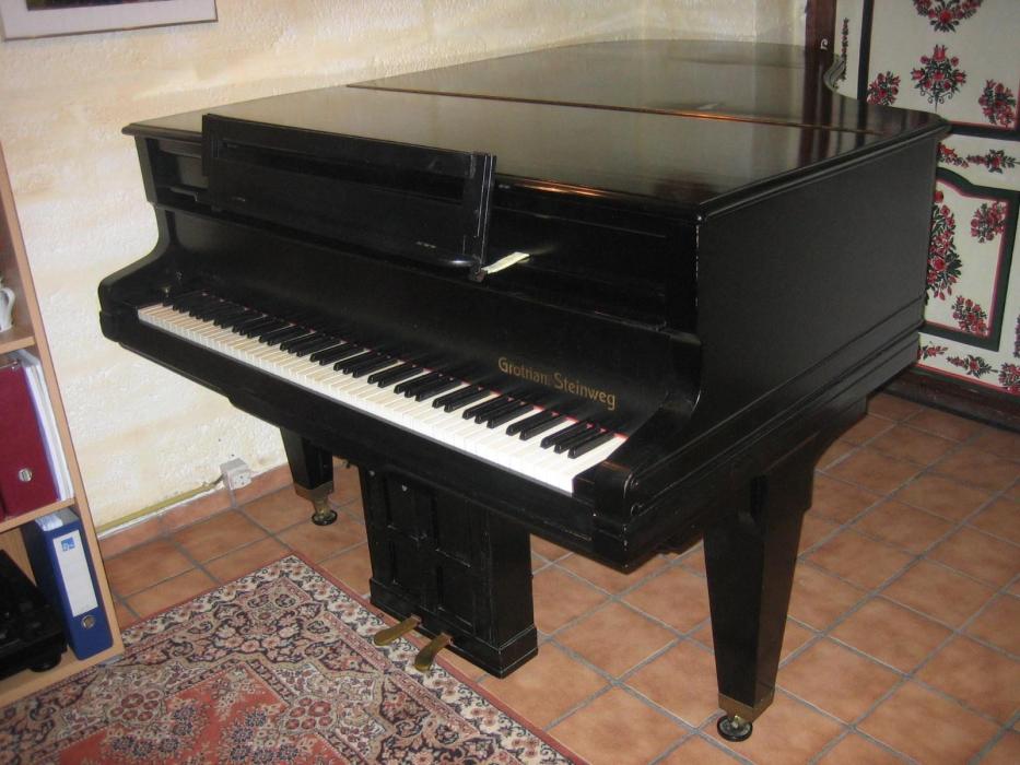 Wir bieten einen historischen Flügel der Marke Grotrian Steinweg zum Verkauf an. Das Instrument ist mit einem pneumatisch gesteuerten Selbstspieler-System (Pianola-Walze) ausgestattet. Der Flügel befindet sich seit den 1930er Jahren im Familienbesitz. Im Jahr 1989 hat mein Vater das Instrument für damals 10.000 DM (umgerechnet etwa 5000 Euro) von seinen Geschwistern im Rahmen einer Familienerbschaftsregelung übernommen.