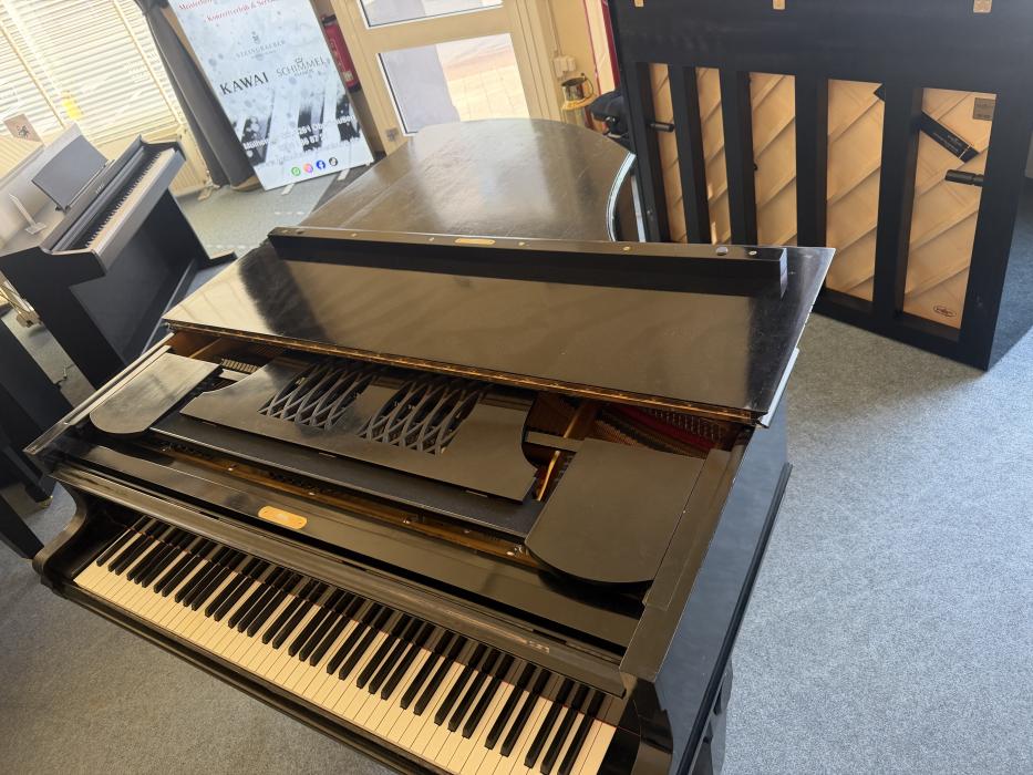 Mit einer stattlichen Länge von 180 cm entfaltet dieser Flügel einen warmen, tiefgründigen Klang, der typisch für die goldene Ära des Klavierbaus ist. Man spürt sofort: Dieser Flügel kann viele Geschichten erzählen.