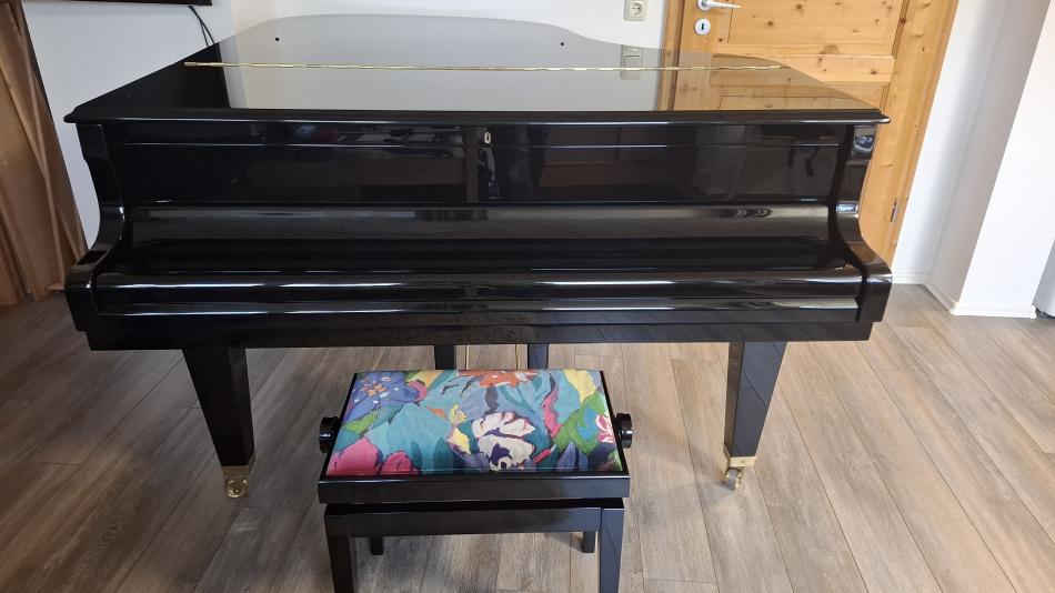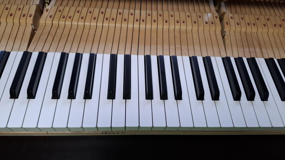 Der Flügel ist gestimmt auf 442 Hz und hat einen schönen und ausgewogenen Klang.