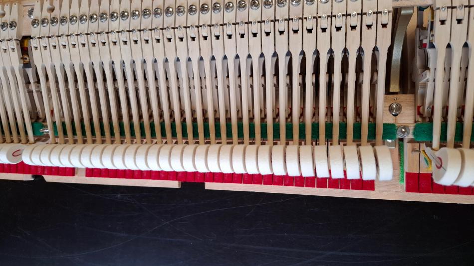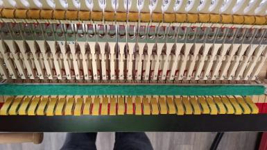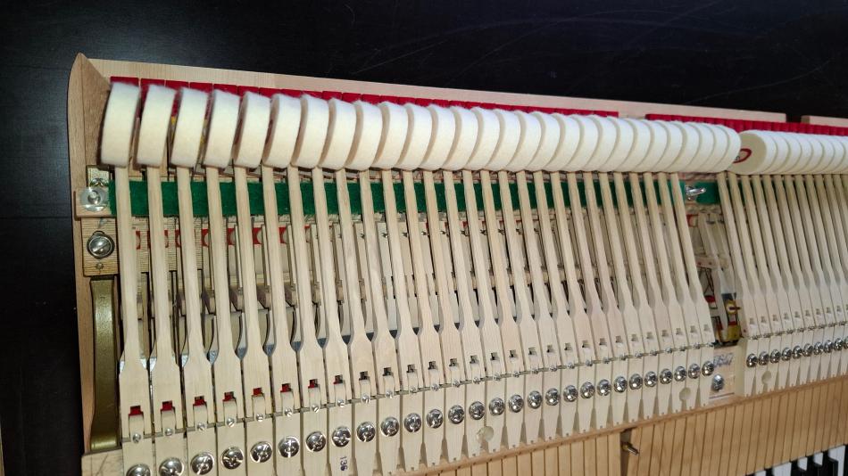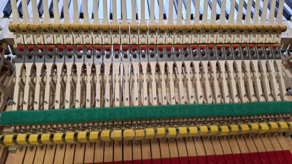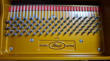 Das Instrument ist in einem technisch neuwertigen Zustand mit leichten Gebrauchsspuren auf der schwarz polierten Oberfläche. Die Mechanik wurde komplett durchreguliert und die Hammerköpfe leicht abgezogen.