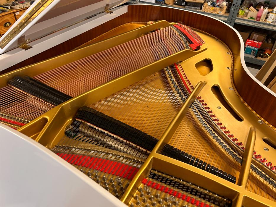 Der Gesamtzustand ist außerordentlich gut. Die akustische Anlage ist im unversehrten Originalzustand. Mechanik und Klaviatur wurden behutsam überholt. Eingebaut ist eine zuverlässige Renner Mechanik, die Inspektion erfolgte in unserer Meisterwerkstatt.