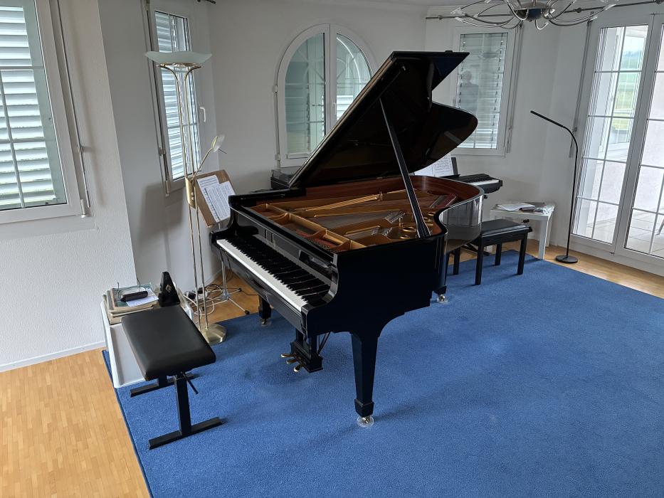 Schwarz lackiert, gepflegt, regelmässiger Service vom gleichen Klavierbaumeister