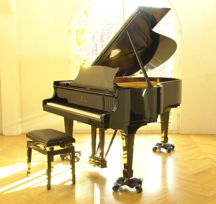 Zudem ist der Flügel präzise einreguliert, intoniert (brillant belassen) und auf 443 Hz gestimmt.