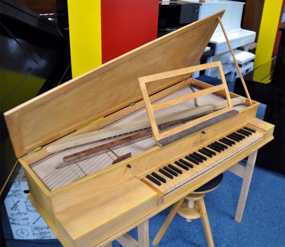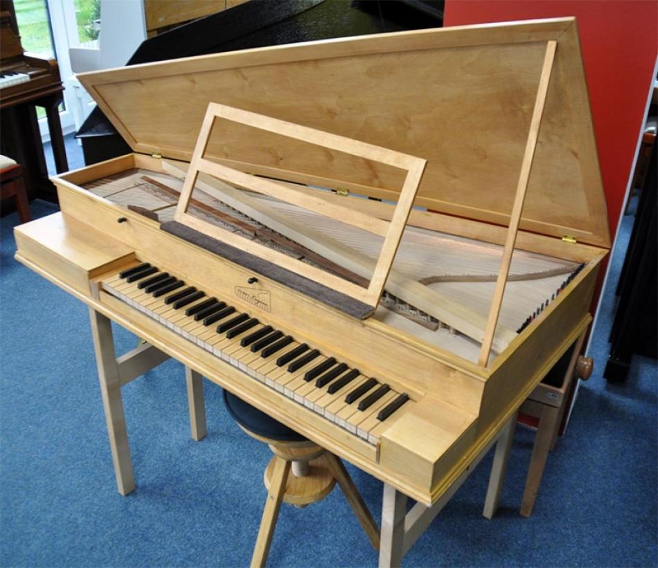 Leichtes (14 kg) und klangstarkes Virginal im italienischen Stil. Umfang C1 – g3, Lautenzug geteilt, transponierbar 392/415/440 Hz. Neubau mit hochwertigen Komponenten: Springer von Vogel, Tastatur von Laukuff, Saiten von Malcolm Rose.
