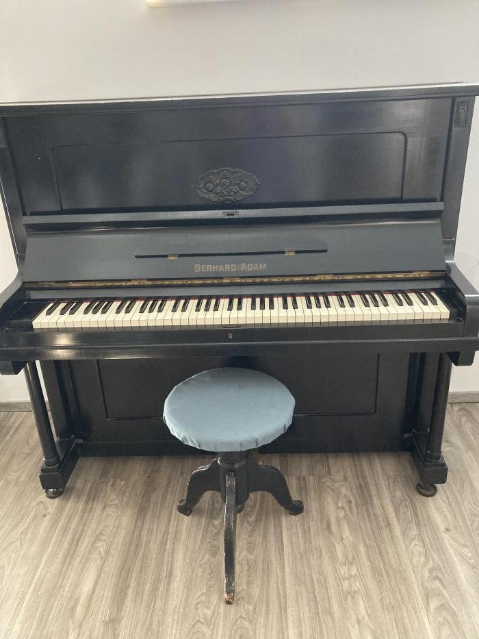 Schwarzes Klavier von Gerhard Adam inkl. Hocker zu verkaufen. Das Klavier ist aus dem Jahr 1923 und in gutem Zustand.