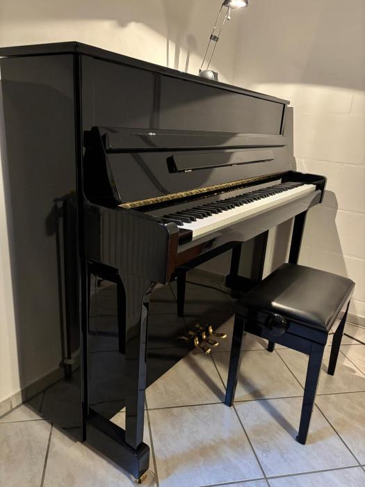 Wegen Umzug in eine kleine Wohnung verkaufe ich ein Bechstein Academy Klavier Modell A2 Classic mit passender, höhenverstellbarer C. Bechstein Bank. Dieses hochwertige Instrument aus dem Jahr 2014 gebe ich aus 2. Hand (nach 10 Jahren) ab. Es besticht durch seine klassische schwarze Oberfläche mit Hochglanzeffekt und bietet mit 88 Tasten und drei Pedalen einen breiten Klangfarbenreichtum von hauchzart bis kraftvoll – jeder Ton und jede Anschlagsnuance lässt sich präzise umsetzen. Grundsätzlich ist auch dieses Bechstein Klavier mit einem VARIO Digitalsytem nachrüstbar, so dass Spielen für die Umgebung lautlos und mittels Kopfhörern möglich ist.