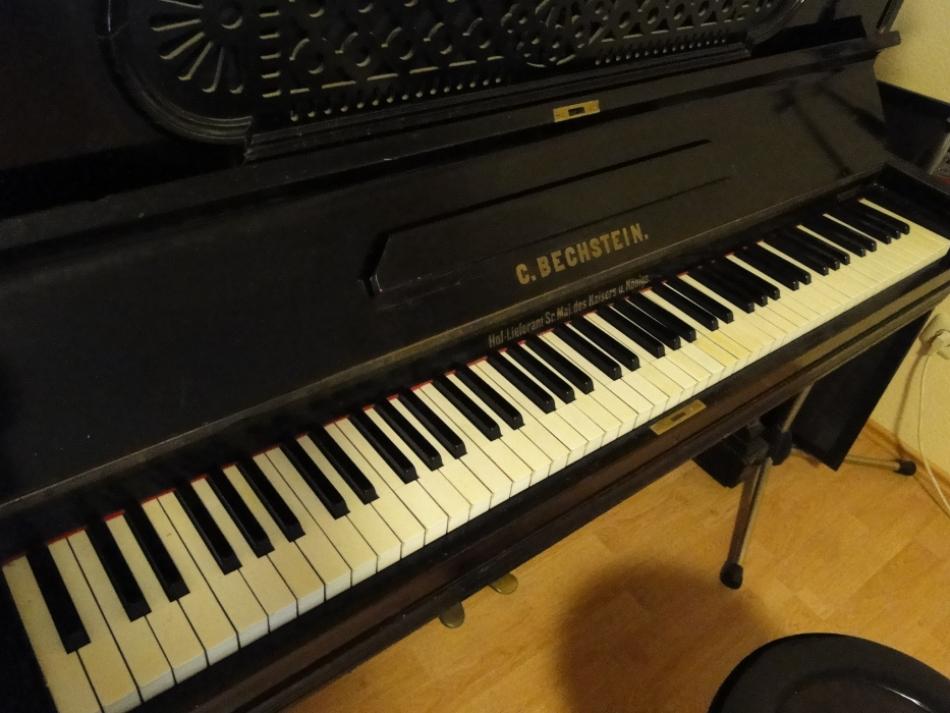 Das Klavier befindet sich im Originalzustand mit der originalen Elfenbeintastatur. Es wurde vor ca 10 Jahren zum letzten mal gestimmt und die Hammerköpfe ein wenig abgeschliffen. 2 Zierleisten sind gebrochen, die Bruchstücke existieren noch.Das Instrument steht im 1.OG eines Hauses, zu Standort und Treppenhaus vgl. die Bilder. Das Angebot richtet sich an Selbstabholer, die auch den Transport durch das Treppenhaus ins EG erledigen müssen. Hierzu dürften 3 - 4 kräftige Kerle erforderlich sein. Ein Flaschenzug kann ggf. an der Treppe zum OG angebracht werden.