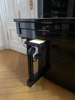 die Pedale und die Rollen sind chrombeschichtet. Das Klavier ist insgesamt sehr sprechend