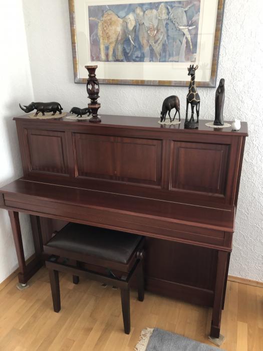 Wegen meines baldigen Umzugs verkaufe ich mein Solton-Klavier mitsamt passendem Stuhl (beides in mahagoni).Hat damals über 8000 DM (1989) gekostet. Vor wenigen Wochen ist es von einem Fachmann gestimmt worden.