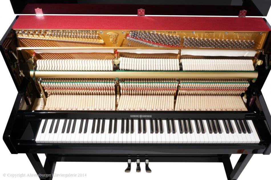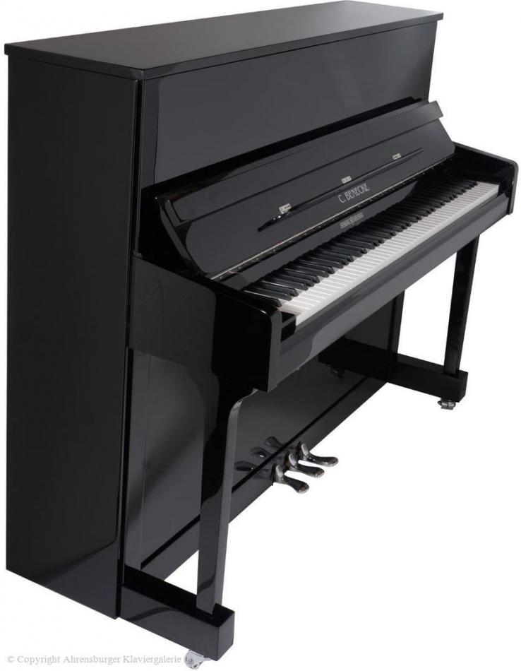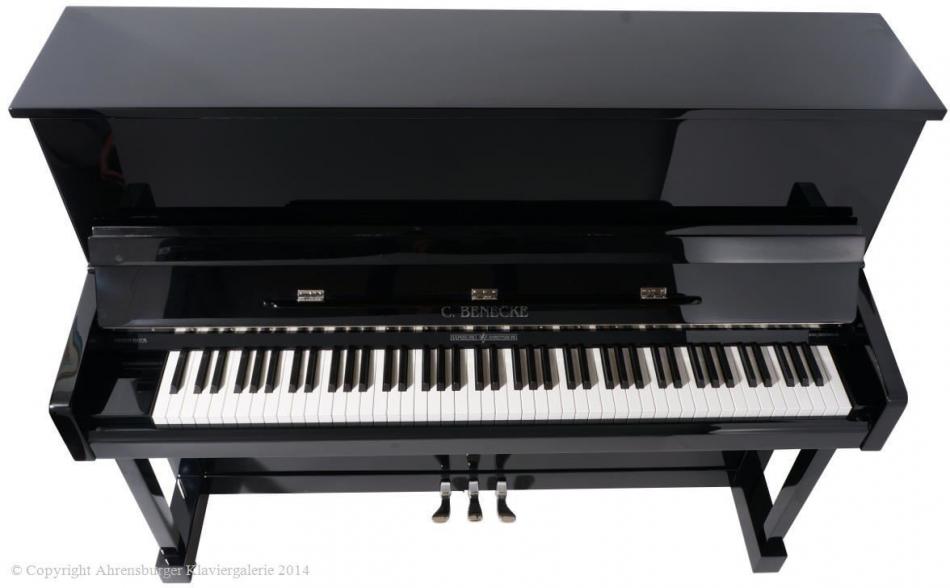 Neues Klavier! Die C. Benecke Klaviermechaniken, sind wie ihr berühmtes Vorbild, aus feinem, gut abgelagertem, massivem Weissbuchenholz französischer Herkunft, nach deutschem Vorbild, in traditioneller Weise gefertigt.Die Hammerkopffilze und sonstige Tücher und Filze entsprechen den bis dato verfügbaren guten, bis sehr guten Qualitäten. Die komplette Ausarbeitung, Endregulierung und Intonation in unseren Ahrensburger Werkstätten machen dieses Klavier, auch bei professionellen Musikern, zu einem beliebten Instrument ,nicht zuletzt wegen seiner guten Stimmhaltung, der ausgewogenen und repetierfreudigen Spielart, sowie des voluminösen Klanges. Das Seitenmaterial wird von der Firma Röslau aus Deutschland geliefert.