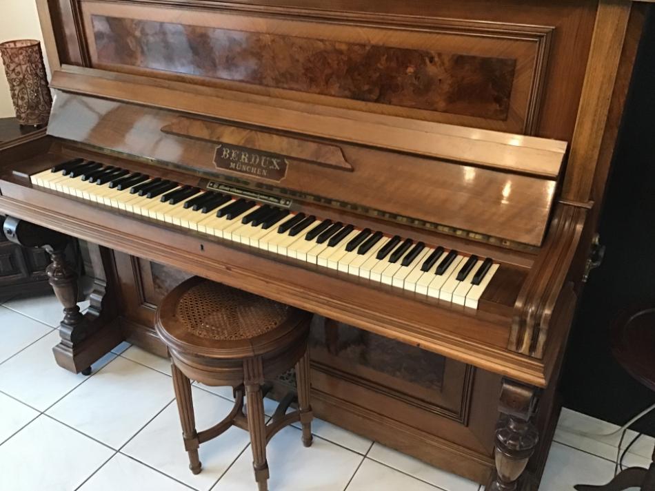 A saisir piano droit Berdux de 1903 en parfait état. Tabouret, bois précieux, numéroté. Cet instrument de musique acheté à Metz est dans la famille depuis plusieurs générations.