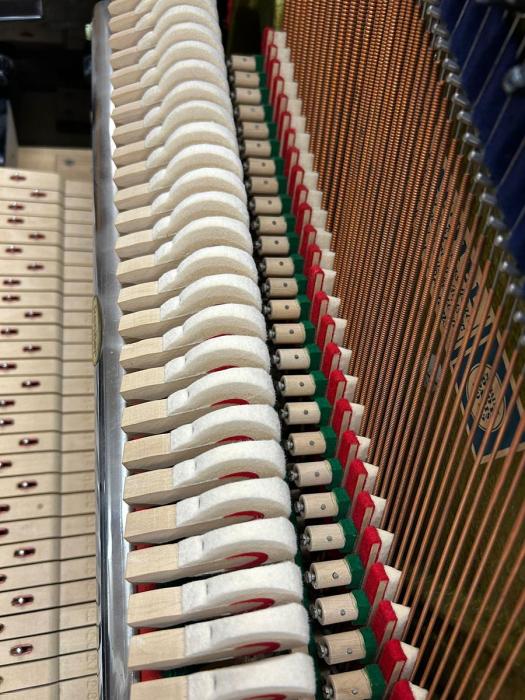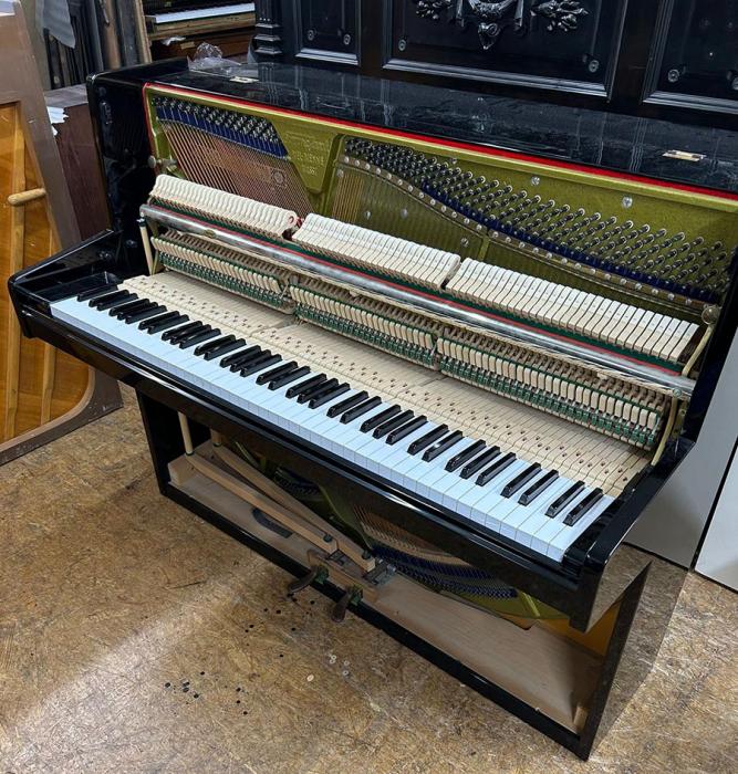 Weitere Informationen: In unserer Fachwerkstatt wurden die Hammerköpfe abgezogen und die Rennermechanik reguliert. Die Hammer- und Hebegliedachsen wurden ausgetauscht. Die Tasten geradegelegt und poliert. Auch die Messingteile und das Gehäuse sind poliert worden.