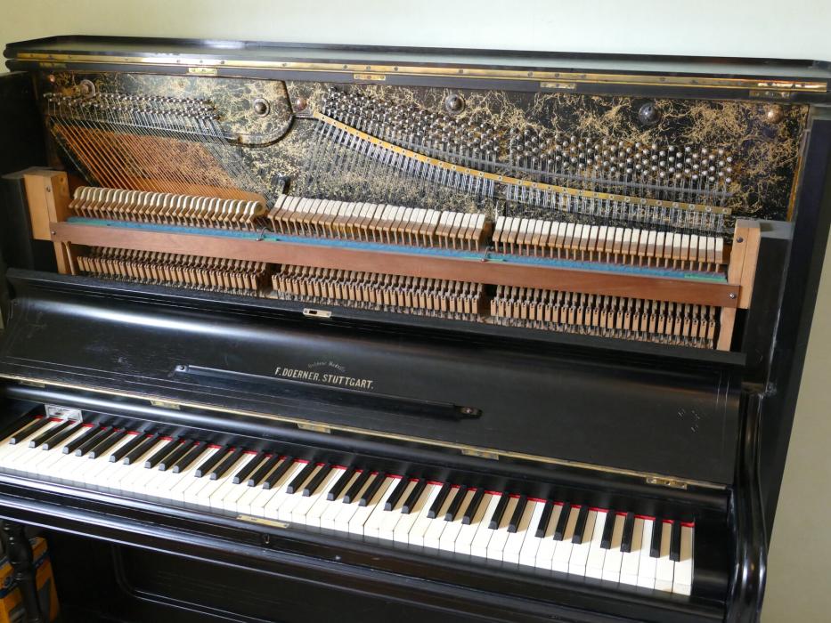 Es handelt sich um ein matt-schwarzes, sehr schönes Holzklavier derFa. F. Dörner Stuttgart (Goldene Medaille).