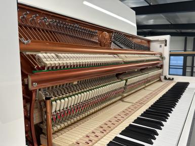 Dank zahlreicher innovativer Design-Features entfaltet das Mod. 115 – Premiere für ein Instrument dieser Größe einen einmalig vollen Klang. Die Klangfarben des Pianos im ikonischen Bauhaus-Stil reichen von tief-dunkel bis klar-hell und erreichen Klänge von weicher Wärme bis zu klarer Brillanz. Der angenehme Widerstand beim...
