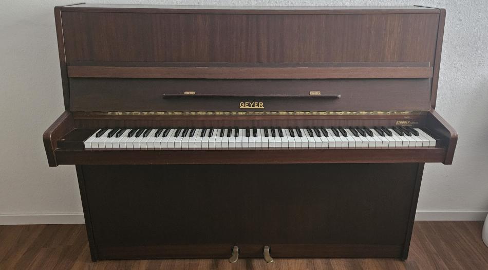 Verkaufe ein Klavier von Geyer, Baujahr ca.1996,, inkl. einem Hocker, in Farbe Nussbaum in einem sehr guten Zustand. Das Klaver stand viele Jahre unbenutzt im Raum. Es müsste nur noch gestimmt werden.Bei Interesse, schicken Sie mir bitte eine E-Mail.