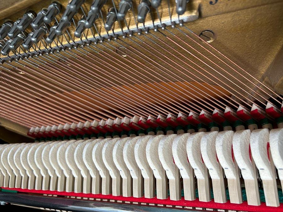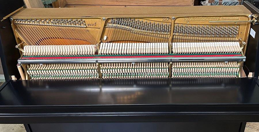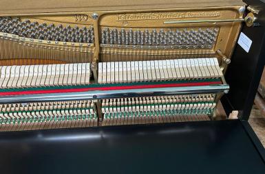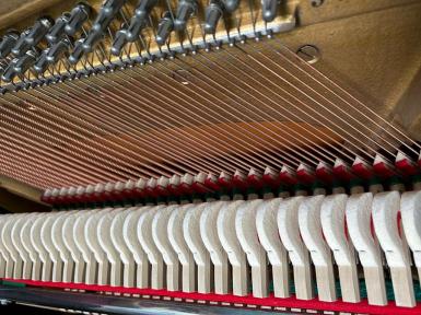Weitere Informationen: In unserer Fachwerkstatt wurde das Klavier neu schwarz satiniert lackiert. Die Hammerköpfe wurden abgezogen und die Mechanik reguliert. Ebenso wurden die Tasten poliert und gerade gelegt. Die Messingteile sind poliert worden.