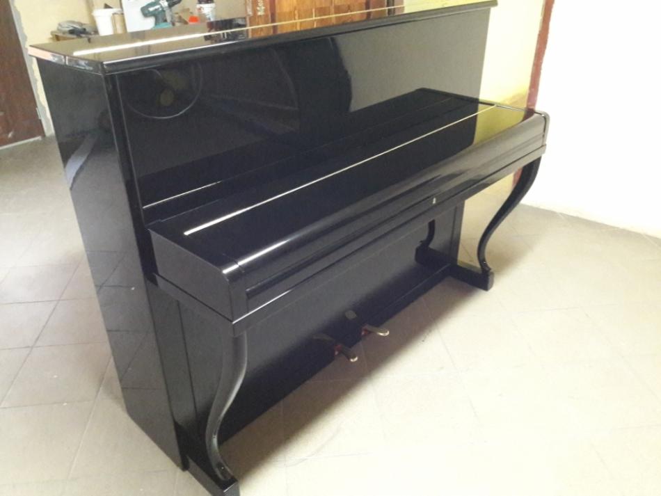Der Korpus war mit hochwertigem, hochglanzpolierten Klavierlack (Politur) bezogen – 2018.