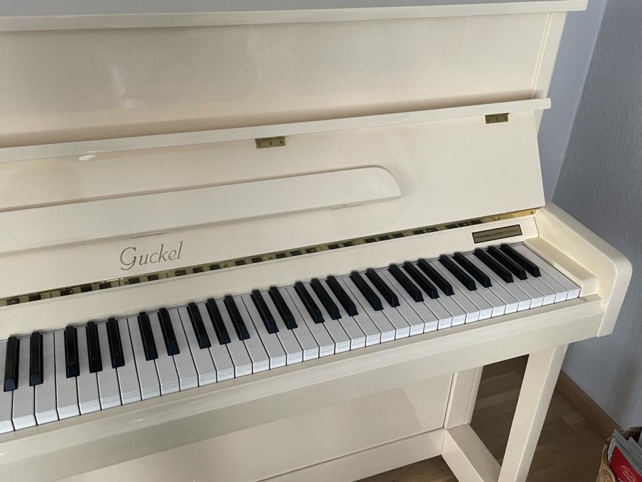 Verkaufe aus Platz- und Zeitgründen mein Guckel Klavier, Modell T-112, ABTO-4185, weiss poliert lt Herstellerangabe.Analog der Fotos leicht champagnerfarben wie auch der Klavierhocker.