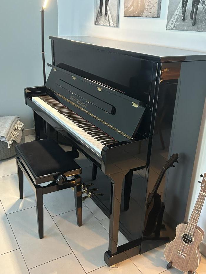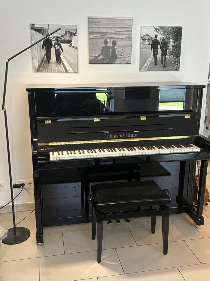 Zum Verkauf steht ein hochwertiges Blüthner-Haessler Klavier Modell K124, Baujahr / Erstkauf September 2015, in der klassischen Ausführung schwarz hochglanzpoliert – ein Instrument, das optisch wie klanglich überzeugt und sich in gepflegtem Zustand befindet.