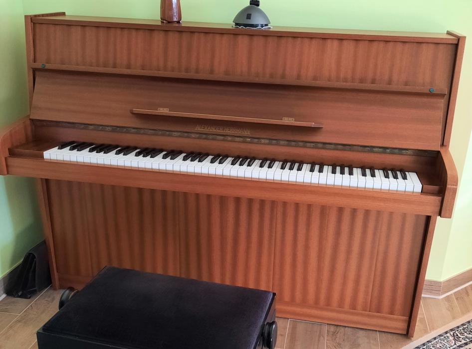 • das Klavier steht zu Besichtigung und zum Probespielen bereit