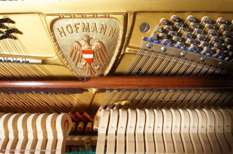 Die Klavier- und Flügelmanufaktur Hofmann steht ebenso wie Bösendorfer für den edlen und berühmten Wiener Ton, in dem sich vielfältige harmonische Klangspektren in allen Lagen manifestieren und optimal miteinander verschmelzen. Erstklassige Mechanik Komponenten der Firma Renner aus Stuttgart und allerfeinstes Resonanzboden Holz, sowie die schöne Elfenbeinklaviatur, machen dieses Instrument zu einem idealen Begleiter für begabte Musiker.