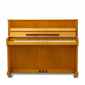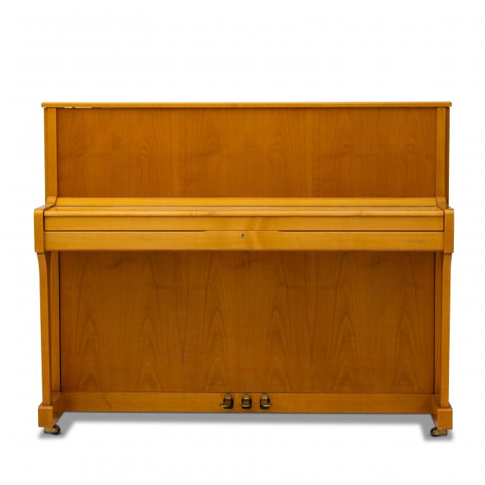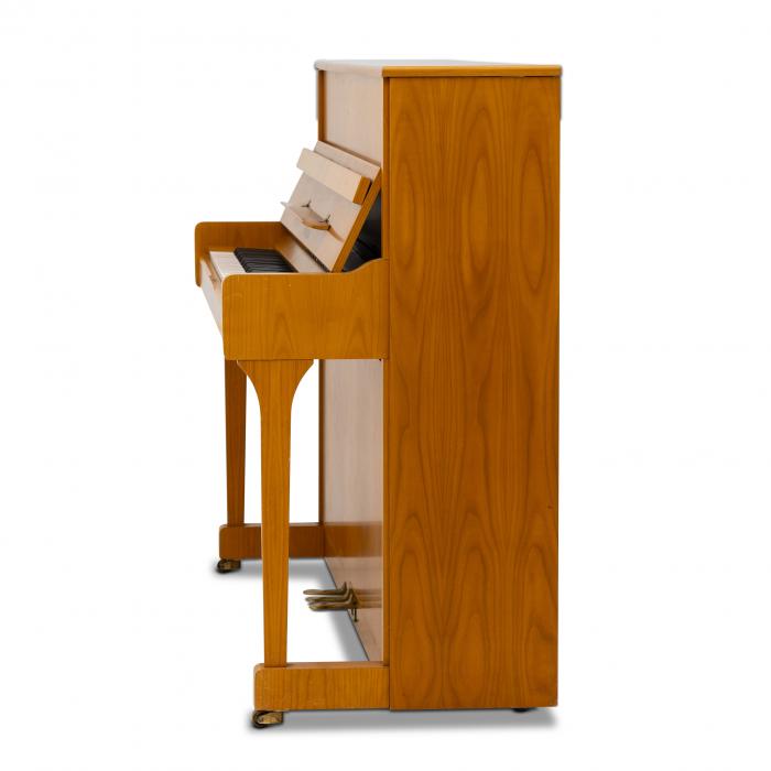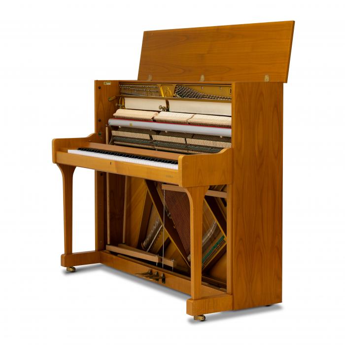 Mit seiner mittleren Bauhöhe und dem zeitlos eleganten Design setzt das Hupfeld Klavier Modell 118 in satiniertem Kirschbaum nicht nur in Wohnräumen ein optisches Highlight, es ist auch in Schulen und Institutionen ein Instrument, das Klassenraum oder Aula vervollkommnet. Dass es dabei auch noch eine solide Bauweise und eine hochwertige Konstruktion mitbringt, macht das Hupfeld 118 zu einem ausdauernden und zuverlässigen Privat- oder Unterrichtsinstrument. \nOb absoluter Klavierneuling, Wiedereinsteiger oder Fortgeschrittener, wer am Hupfeld Klavier Modell 118 Platz nimmt, darf sich auf eine präzise und reaktionsschnelle Mechanik freuen, deren angenehmes und kontrolliertes Spielgefühl...