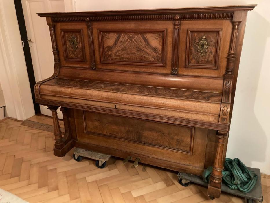 Ein wunderschönes Irmler Klavier aus der Zeit um die 19.Jahrhundertwende sucht seinen Liebhaber. Kleinere Wasserschäden am Holz vorhanden, die aber die Gesamtoptik nicht stören. Das Klavier hat gute hohe und tiefe Lagen, und insgesamt ein gutes Klangvolumen. Die reichen Holzschnitzarbeiten komplettieren das Stück. Im Preis inbegriffen ist eine Stimmgabel- der Gesamtpreis verhandelbar. Gerne können weitere Fotos nachgereicht oder ein Besichtigungstermin vereinbart werden.(Selbstabholer).