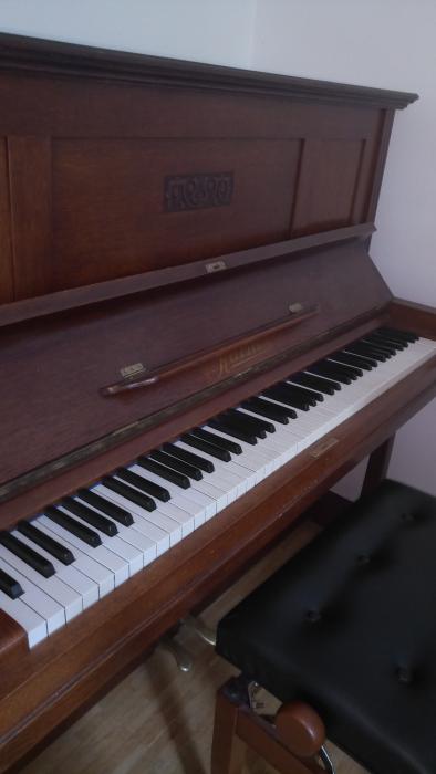 Das Klavier ist vor 100 Jahren von der deutschen Firma Kaim gemacht worden und wurde bis August gerne gespielt und gestimmt. Der Hocker ist auch im Angebot.
