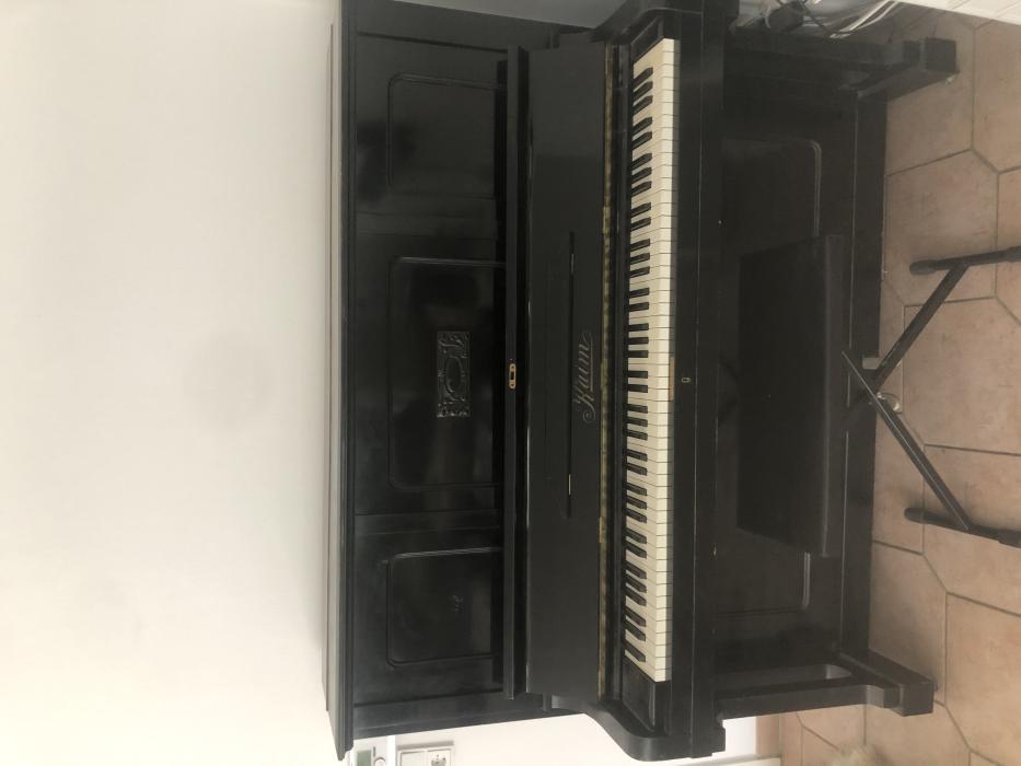 Sehr gut erhaltenes schwarzes Klavier mit Hocker der Firma Kaim zu verkaufen