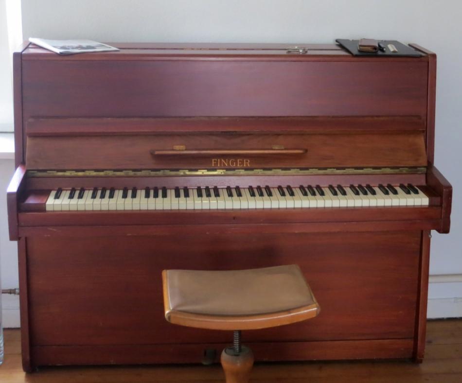 Formschönes Klavier, zuletzt von Opersänger gespielt, mit warmem Klang und mechanischem Regler zum Dämpfen der Lautstärke.
