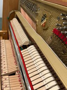 Weitere Informationen: In unserer Fachwerkstatt wurden die Hammerköpfe abgezogen und die Mechanik reguliert. Ebenso wurden die Tasten geradegelegt und poliert. Auch die Messingteile sind poliert worden.