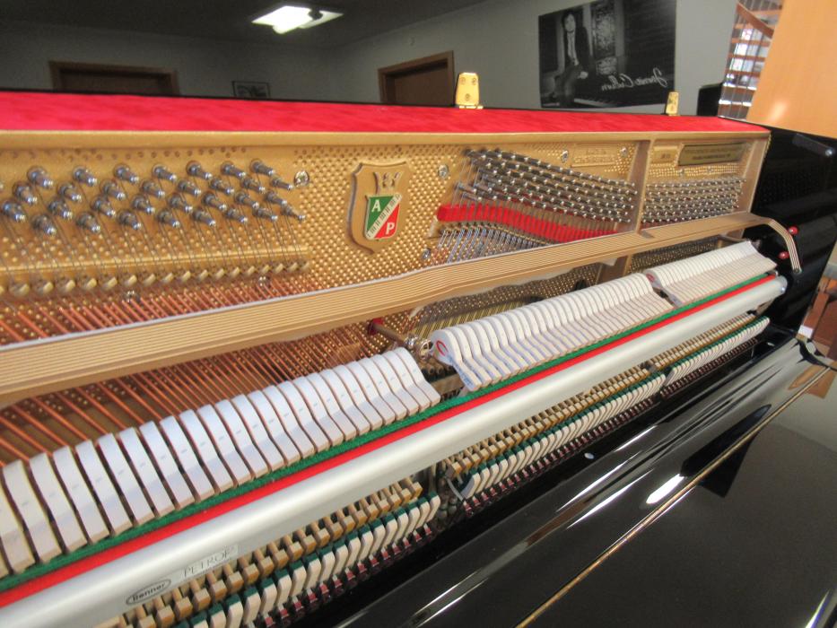 Europäisches Klavier mit warmem, runden Klang und präziser Spielart. Hergestellt in Tschechien. Massiver Resonanzboden aus dem Mittelgebirge Bayrischer Wald/Šumava, RENNER-Hammerköpfe, extrabreites Notenpult über den ganzen Oberrahmen , auf Rollen und mit Schloss in der Klappe. Aus erster Hand, gepflegt und wenig gespielt. Baujahr 2004. Neupreis ca. 11.900,00 Euro. Mit 3. Moderatorpedal für leiseres Spielen,