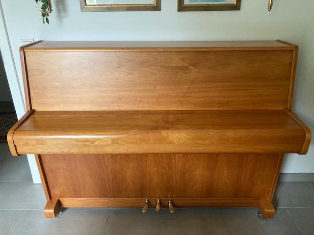 Mein ehemaliger Chorleiter, Kantor einer evangelischen Gemeinde in Mülheim/Ruhr, kaufte dieses Instrument seinem Vater nach dessen Pensionierung, da dessen Flügel in der neuen Seniorenwohnung zu groß war. Mit höherem Alter konnte er es nicht mehr spielen und so erwarb ich es 2008. Aus ebensolchen Altersgründen kann ich das Instrument nicht mehr spielen.Es ist ein Pianova 109 Kirsche, 138251, Kaufvertrag von 1998. Höhe: 110 cm, Breite 147 cm. Derzeit steht das Instrument auf der 1. Etage eines Mehrfamilienhauses.