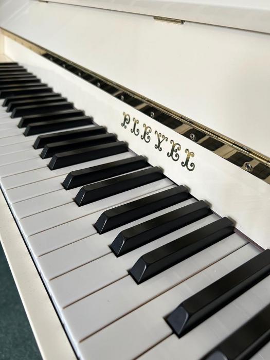 Weitere Informationen: Von 1971 bis 1994 wurden Pleyel-Klaviere von Schimmel hergestellt. Dieses Klavier, mit dem Baujahr ca. 1985, wurde in Braunschweig gefertigt und entspricht einem Schimmel 116.