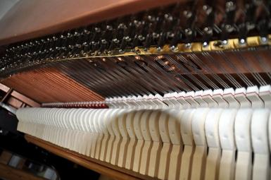neu schwarz lackiert, komplett überholt, neue Hammerköpfe, neue Dämpfung, Mechanik reguliert, neue Saiten und Stimmwirbel, Tastengarnierung erneuert, Tasten und Messingteile poliert