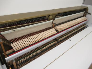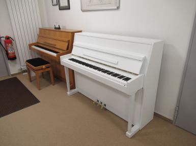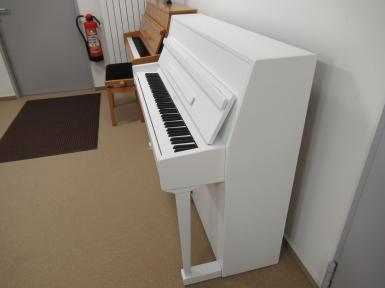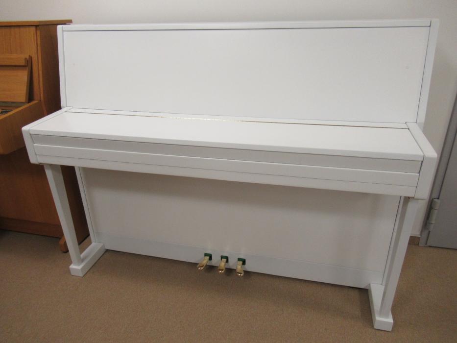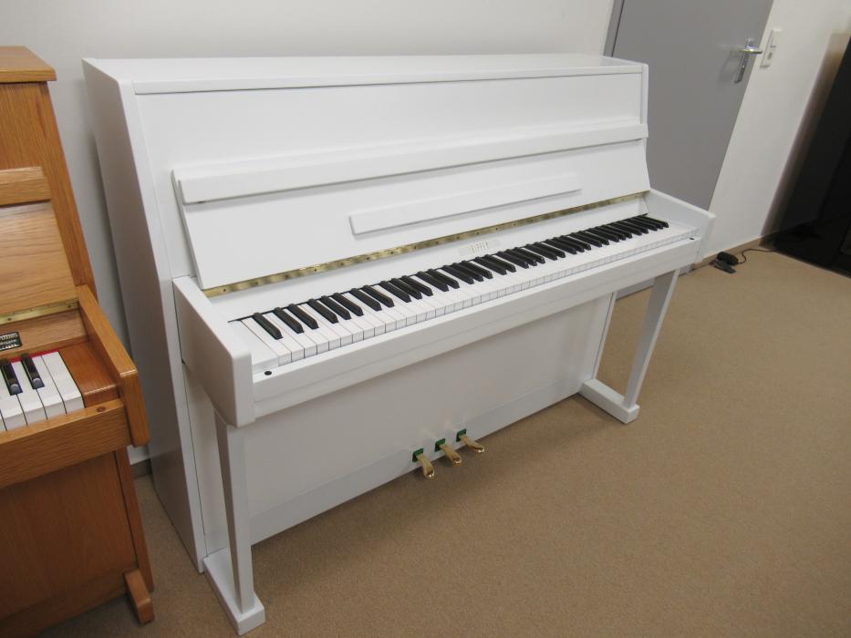 Holländisches Klavier mit langer Konzertklavier-Tastatur. Gute Spielart durch bessere Hebelverhältnisse. Strapazierfähiges Klavier aus erster Hand, wenig gespielt. Hauptsächlich deutsches und englisches Material für europäische Qualität. Klassische Gehäuseform mit Konsolen – Gehäuse NEU in weiß matt umlackiert mit umweltfreundlichen Wasserlacken ! Mit 3. Moderatorpedal für leiseres Spielen,