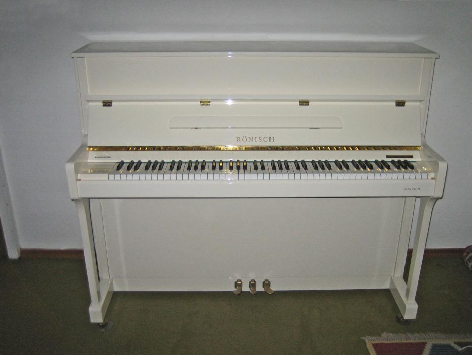 Deutsches Markenklavier von RÖNISCH aus Leipzig, einem der ältesten und berühmtesten Klavier- und Flügelhersteller Deutschlands. Mit Renner-Mechanik in weiss hochglanzpoliert - gebraucht, neuwertiger Zustand