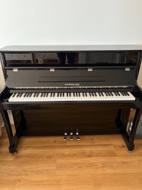 Ich biete ein sehr gut erhaltenes Klavier des Modells Rosenfelder RP 115 T (Eigenmarke des Pianohaus Hamann in Hamburg) zum Verkauf an. Das Instrument wurde vor etwa acht Jahren neu gekauft (Neupreis ca. 6.000 €) und stets pfleglich behandelt.